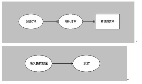 本系统中,一个完整的订单处理过程包括创建订单、订单确认、拣货、发货四个步骤。其中前两个步骤在“销售订单表”模板中实现,后两个步骤通过“拣货单”模板实现,具体流程图如下图所示。