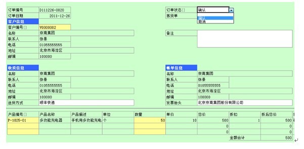 订单创建完毕后,将自动进入订单确认阶段。在订单确认阶段,用户需检查订单中所记载的信息,然后将订单状态设置为“确认”或者“取消”。系统默认状态为“确认”。