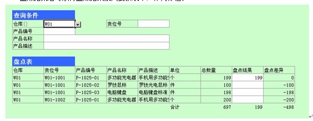 用户可以使用库存盘点记录表生成盘点单,并且在盘点完毕以后记录盘点结果。