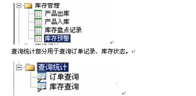 本系统分为主数据、订单管理、库存管理和查询统计四个部分。