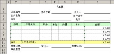 简单地说,模板就是一个空白的表样。依照模板填充了具体的数据之后的表格,称为“表单”。例如,下面的图4-1是一个“订单”模板。图4-2是依照订单模板填报的若干表单。
